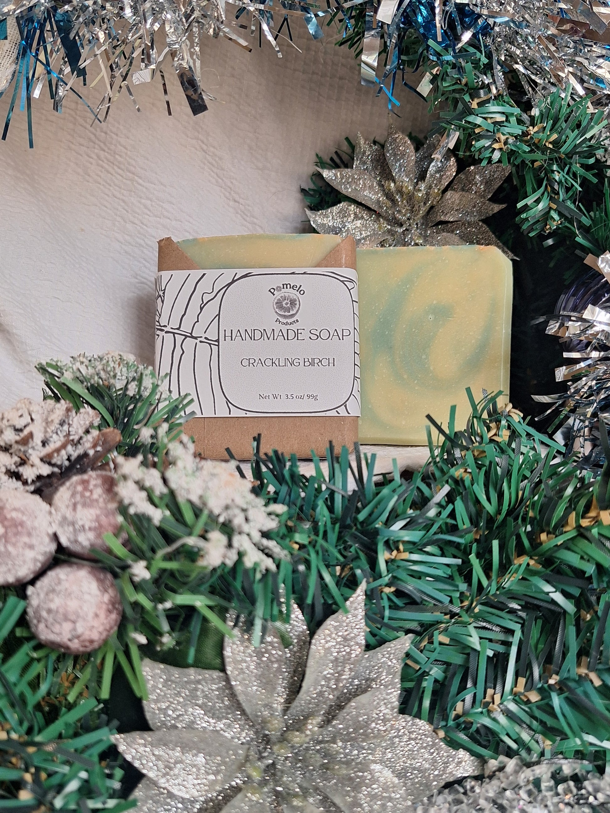 Crackling Birch is a luxurious handmade soap from our holiday collection, evoking the essence of late fall. Bright top notes of bergamot, lemon, and orange awaken the senses, seamlessly transitioning to a refined floral heart of lily, rose, and geranium. This soap offers a balanced, natural fragrance that captures crisp autumn air with a comforting, sophisticated finish—perfect for elevating your seasonal skincare ritual.