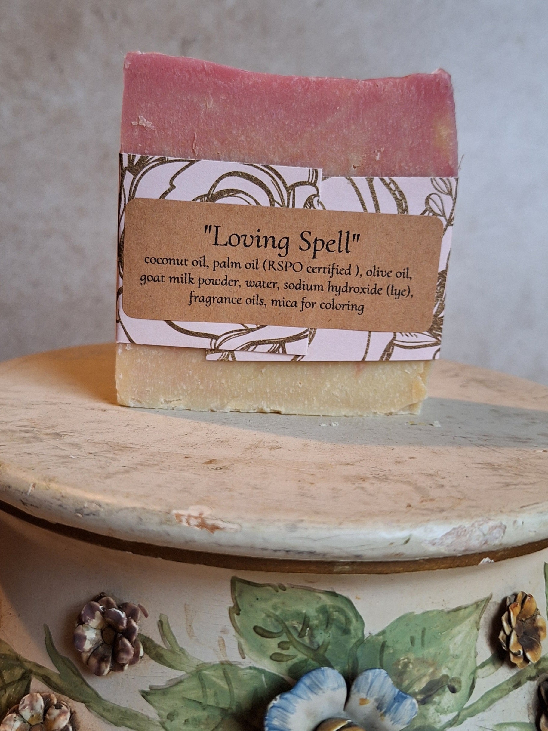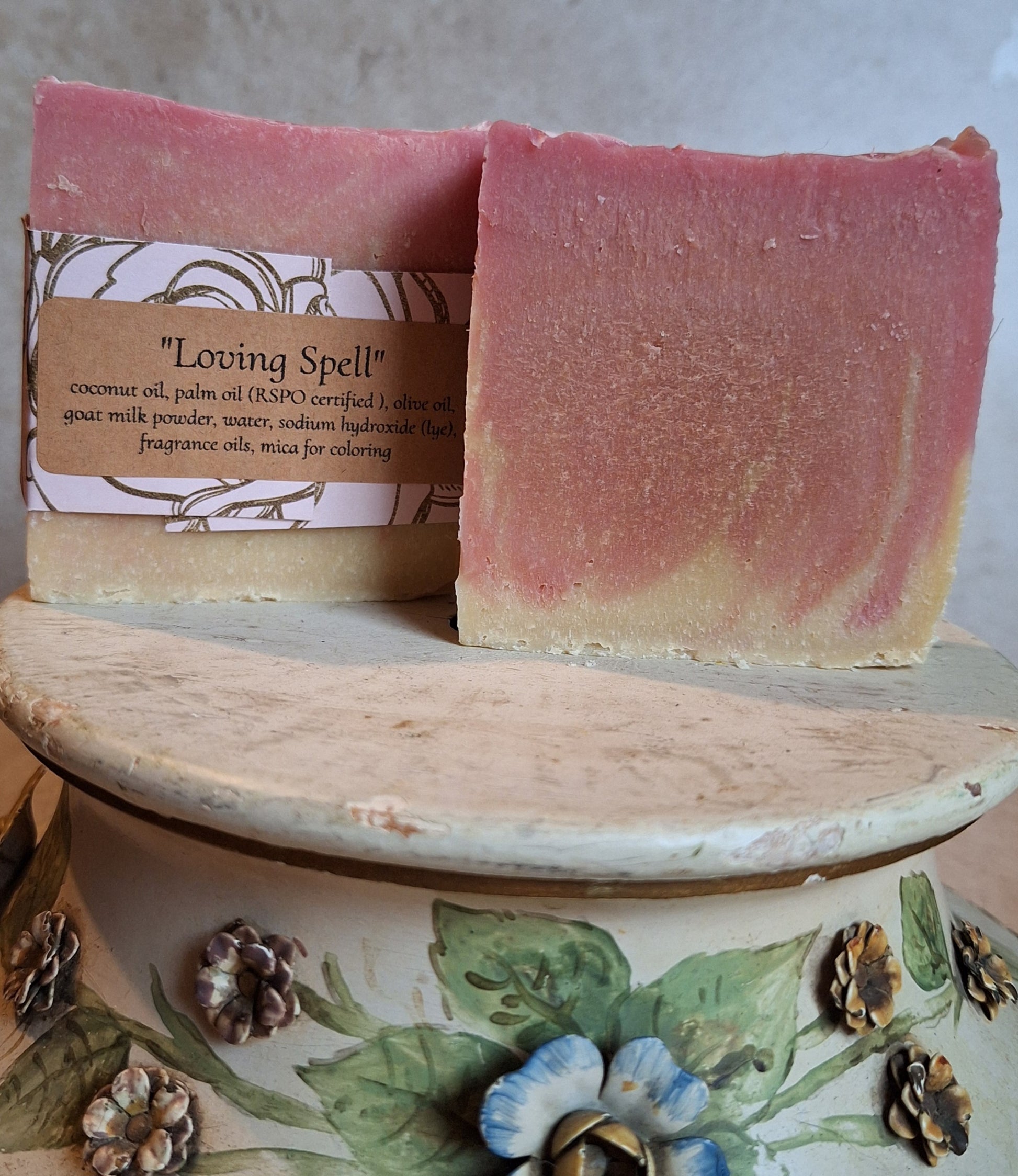 This soap is scented with Nature's Garden "Loving Spell" fragrance oil, which is meant to mimic the perfume Love Spell